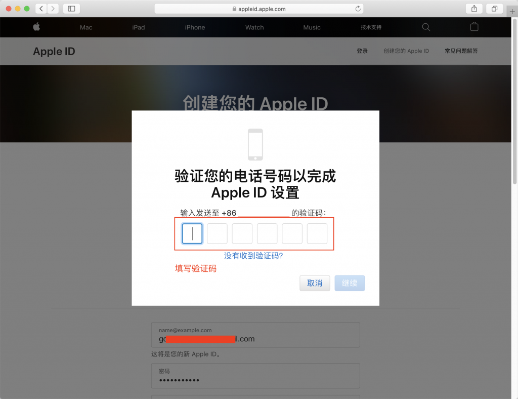 3.根据图片提示,填入验证码,然后点击下方继续按钮进入下一步。